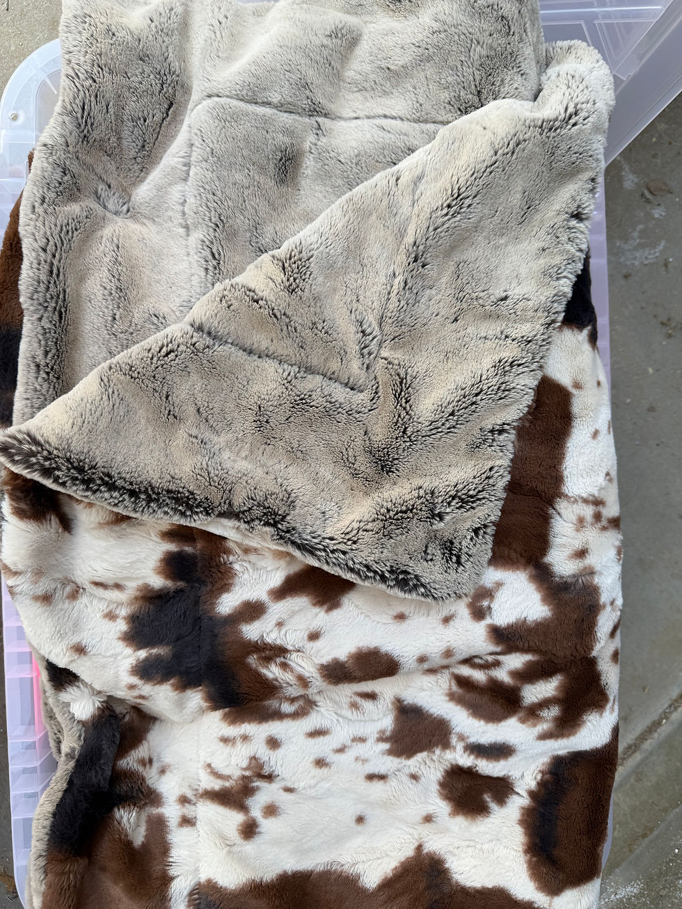 Dark Spot Cowhide Pattern with Cream base / Solid Light Grey Throw