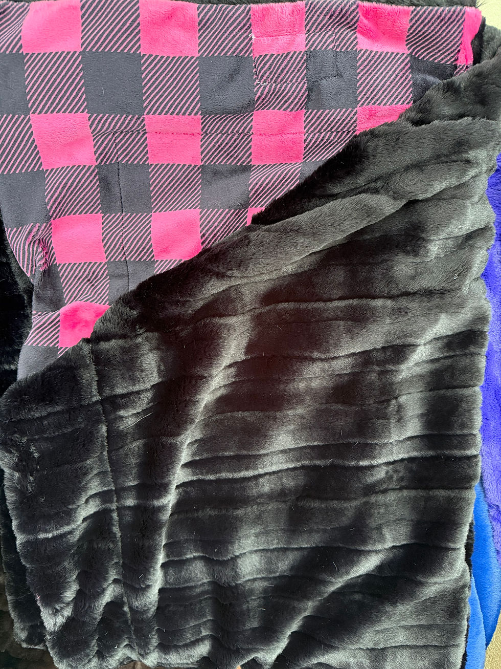 Hot Pink and Black Checkered pattern / Solid Black Throw